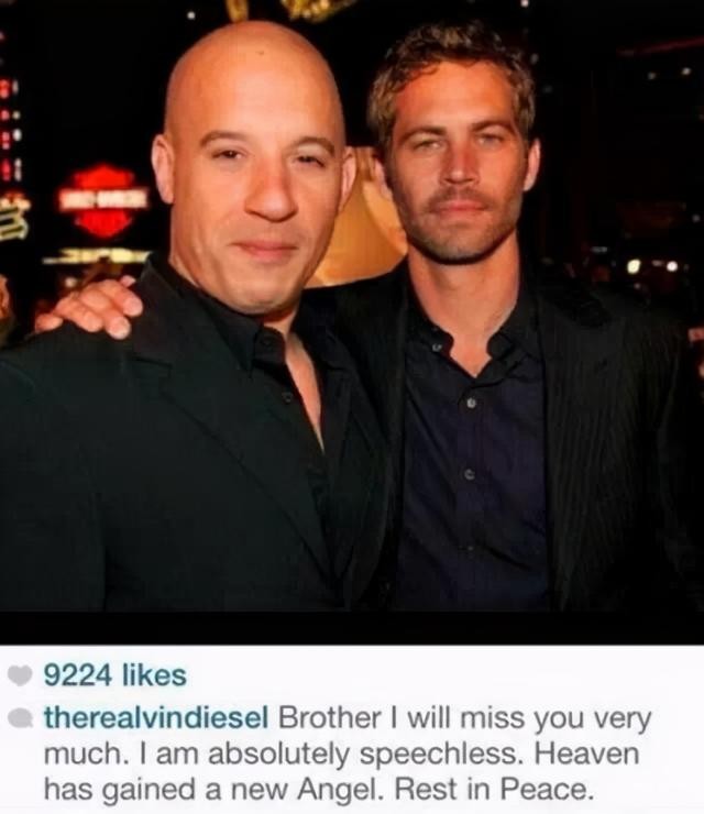 当年保罗.沃克在拍摄《速度与激情7》时,在车祸中不幸过世。闻此噩耗,范.迪塞尔悲伤不已。