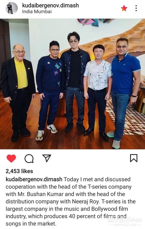 如今28岁的迪玛希生活在哈萨克斯坦,从他最近更新的ins中可以了解到,他这些天在忙着扩展自己的音乐事业:和T系列公司负责人谈了合作、参观了孟买的Hungama公司、采访中提到了自己的新歌、目前准备着进军印度市场。