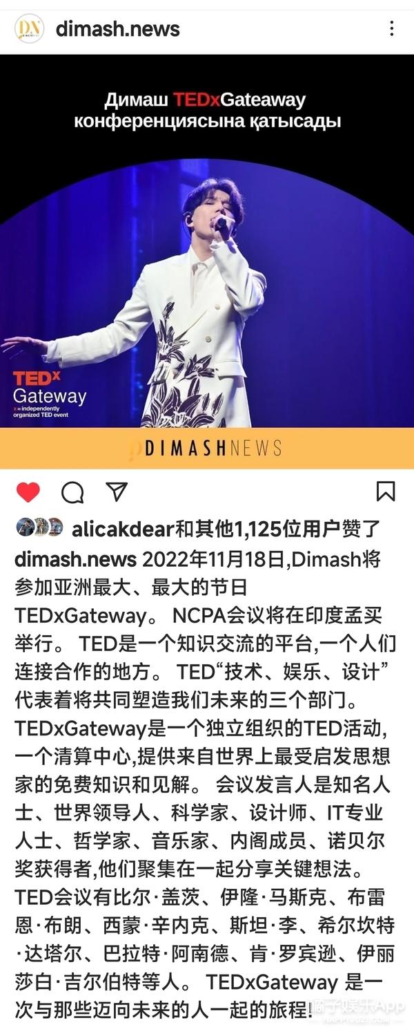 不仅如此,根据DimashNews报道,迪玛希将于11月18日参加TEDxGateway(亚洲最大的会议);