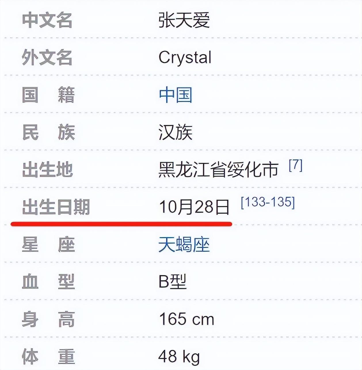 三年前,八先生查找资料的时候,发现张天爱在百科上的出生年份是1990年,大概那时候她对于自己的年龄还没有很在乎,所以还愿意如实写上。
