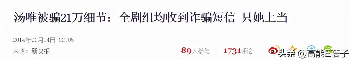 说起来,王新宇并不是第一个遭遇电信诈骗的明星。