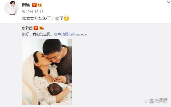 很快,谢楠转发韩庚动态并附文:" 恭喜女儿奴终于上岗了 ",看得出来,早在宝宝出生之前韩庚就很想要一个女儿吧,如今终于如愿。很多人都知道,卢靖姗和谢楠老公吴京曾合作《战狼》这部电影,当时吴京还表示如果将来卢靖姗生个女儿那就当孩子的干爹,生儿子就算了,毕竟自己已经有两个儿子了,就稀罕个闺女,如今卢靖姗平安顺利生下女儿,也算是圆了吴京的闺女梦。