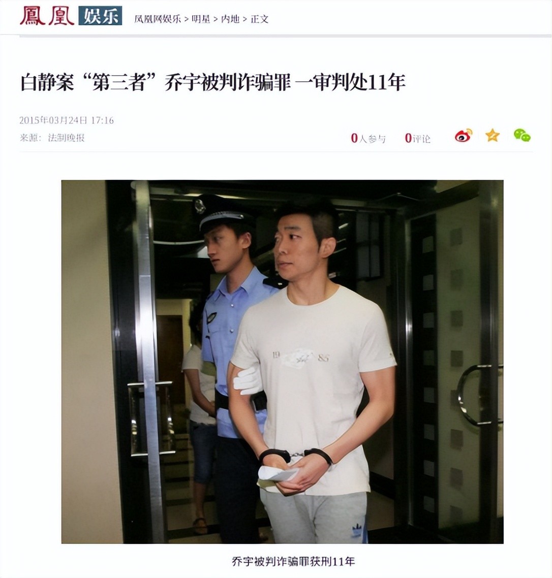 信息来源:凤凰娱乐2015.3.24——白静案“第三者”乔宇被判诈骗罪一审判处11年