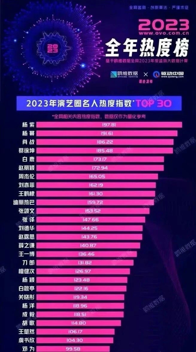 2023年演艺圈名人热度指数榜单揭晓,女明星终于登顶!
