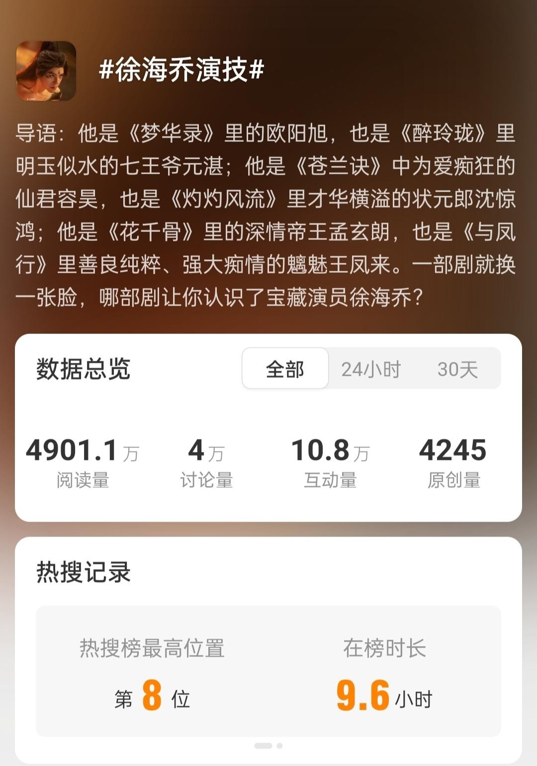 随后“徐海乔的演技”迅速登上了热门平台,更是成为了话题的焦点!