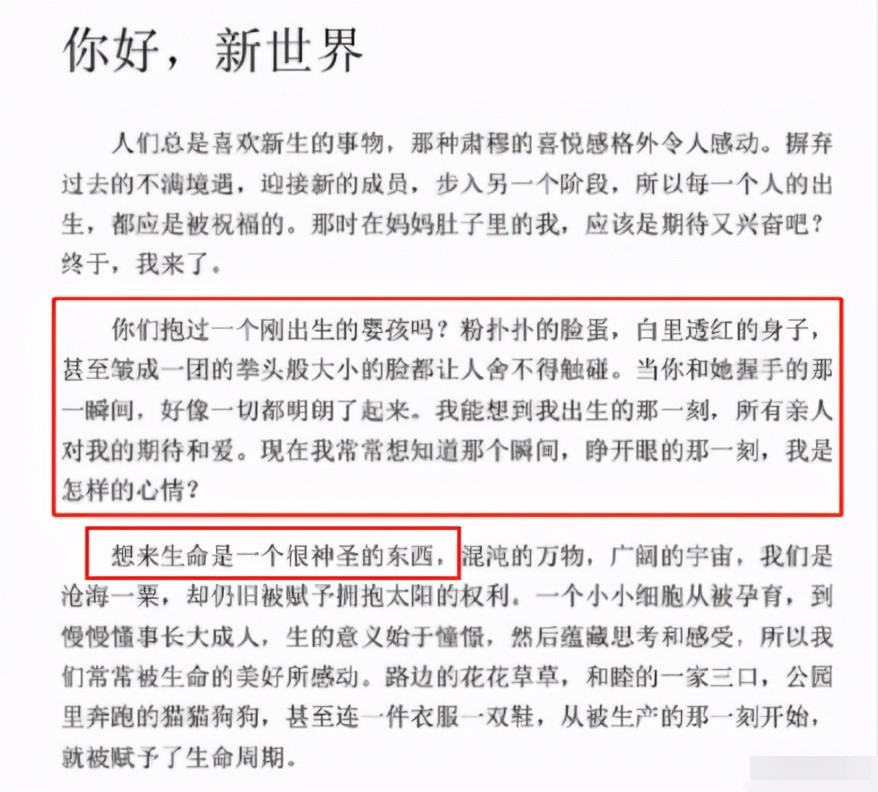 她写道:“你们抱过一个刚出生的婴孩吗?粉扑扑的脸蛋,白里透红的身子,甚至皱成一团的拳头般大小的脸都让人舍不得触碰。当你和她握手的那一瞬间,好像一切都明朗了起来。”她还说:“想来生命是一个很神圣的东西……”