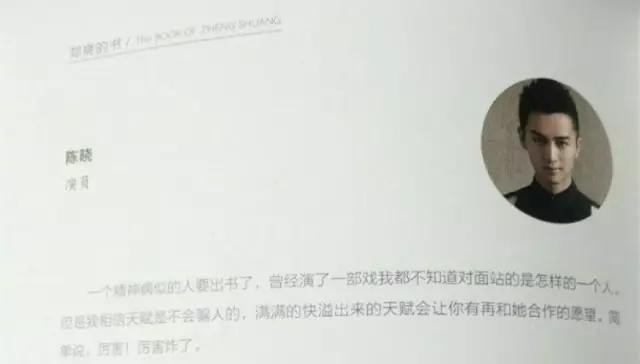 陈晓曾和郑爽合作过《五鼠闹东京》他在序言中说:一个精神病人似的人要出书了,曾经演了一部戏我都不知道对面站的是怎样的一个人。