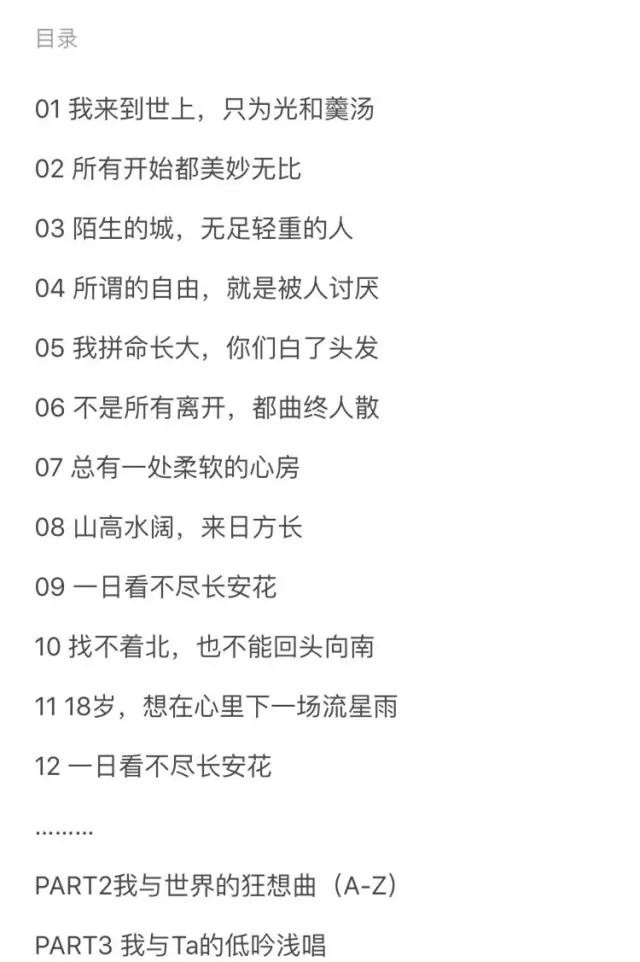 章节名称看起来也很有“悲伤青春文学”的风格,和郑爽拍过的青春偶像剧风格一致。