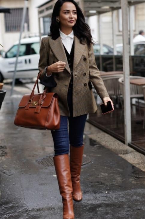 上紧下松的搭配方式看似简约,但是会有很好的高级感,同时也不缺吸睛的时髦感。常规款的西装外套由男士版型改良而来,配套的裤子中也有修身款的搭配,但是这样的搭配还是适合小白或者初入职场的女生,对比之下,选择其他紧身款式会有更强的视觉冲击感,如果你的身材够好,效果更是能翻倍。