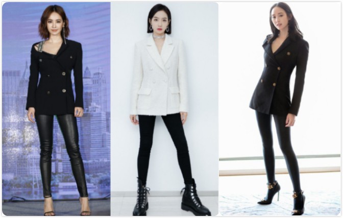 皮肤较为白皙且腿较细的姐妹,推荐你们可以尝试西装外套版的下装消失。选择一款廓形的西装单穿,修长的下摆盖住整个臀部,整个人显得非常有活力。这里我要提一下,西装外套不要选择太过正式的版型,搭配一双马丁靴效果会更好哦!