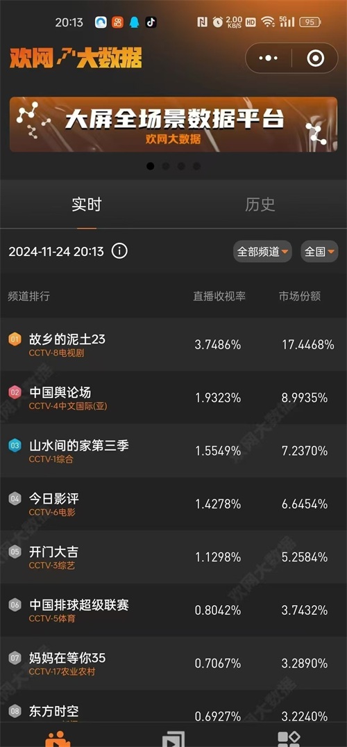 你知道吗?据不完全统计哦,这剧播到第 6 集的时候,收视率就跟开了挂似的破 3 了,峰值达到 3.3,一下子就成了 “央八史上最快破 3 剧集”,这速度,比火箭还快!可它还没完,播到 12 集,收视峰值又窜到 3.43,市场份额占了 17.17%。一路狂飙到 23 集时,峰值高达 3.74,市场份额 17.44%,这是要上天的节奏!