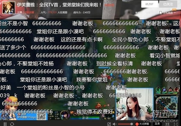 伊芙蕾雅作为LOL女神级主播,有80多万观众支持,粉丝竟然刷出666个合体,合计人民币33.3万!