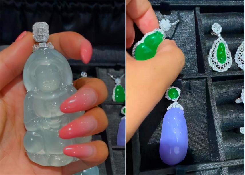 娇娇晒出一桌翡翠