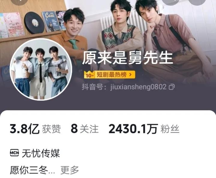 原来是舅先生是抖音上情感故事类博主,以舅舅和侄女的故事吸引大家观看。无忧传媒旗下男网红,目前抖音粉丝量超2430万!