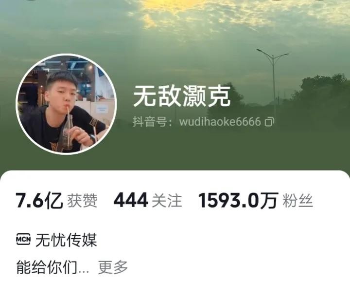 无敌灏克是抖音平台上一位人气非常高的网红博主,凭借富有节奏的rap视频,深受广大网友的喜爱。无忧传媒旗下男网红,目前抖音粉丝量超1593万
