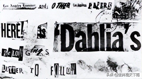 伊丽莎白被发现大约一周后,从比尔特莫尔酒店附近的一个邮箱中发现了一个包裹。包裹信封的文字是,用从报纸上剪下来的字拼成的“大丽花的个人物品”