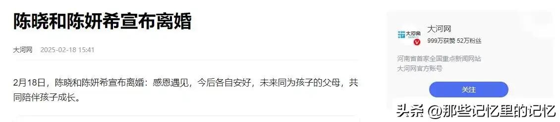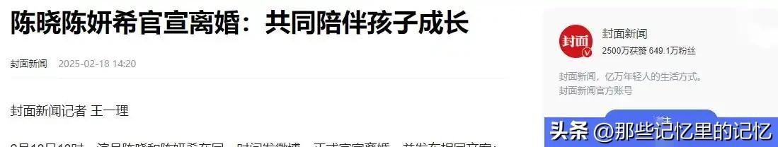直到陈妍希与陈晓离婚的消息传出后,才发现原来这场婚姻并没有看起来那么美好。