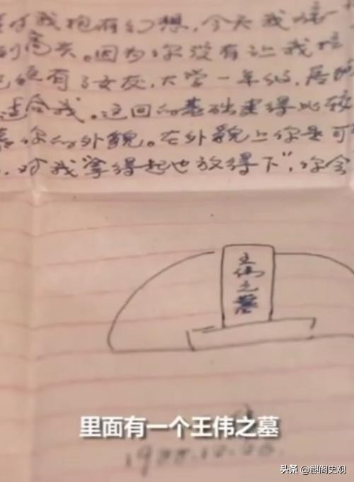 平日里俩人都是靠书信的方式来往,在1989年元旦时,阮国琴收到了王伟厚厚的来信,他在信中提到他有找了一个女朋友,并且王伟还画了一座令人心悸的坟墓,墓碑上写着“王伟之墓”。