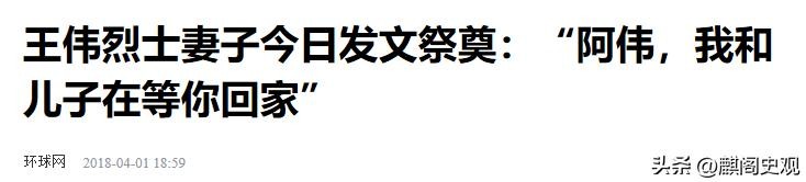 环球网2018-04-01《王伟烈士妻子今日发文祭奠:“阿伟,我和儿子在等你回家”》