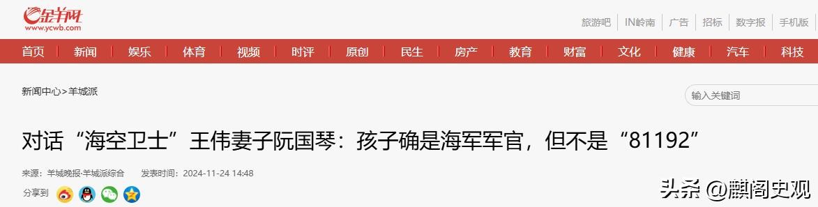羊城晚报2024-11-24《对话“海空卫士”王伟妻子阮国琴:孩子确是海军军官,但不是“81192”》