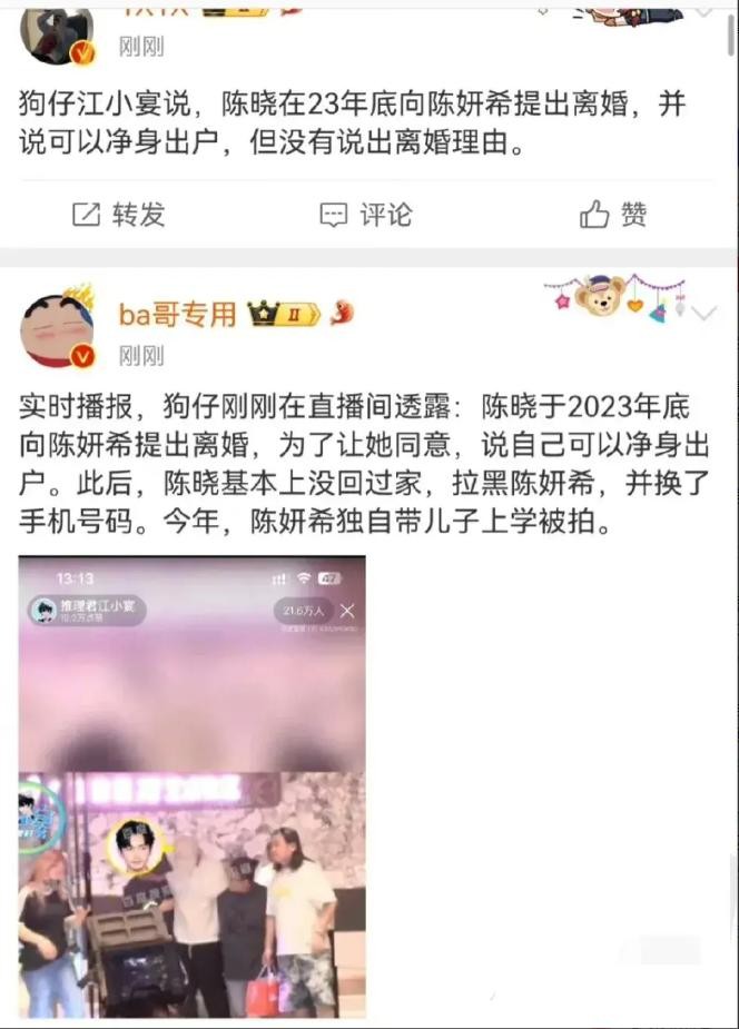 网传陈晓、陈妍希闹离婚?陈妍希人设没了!这对曾经在大众眼中甜蜜恩爱的夫妻,如今却被传已经协议离婚,而且这一传闻在去年年底就已经开始悄悄蔓延。消息一经曝出,直冲热搜榜榜首。无数网友被这突如其来的消息震到了,展开激烈的讨论讨论之中。