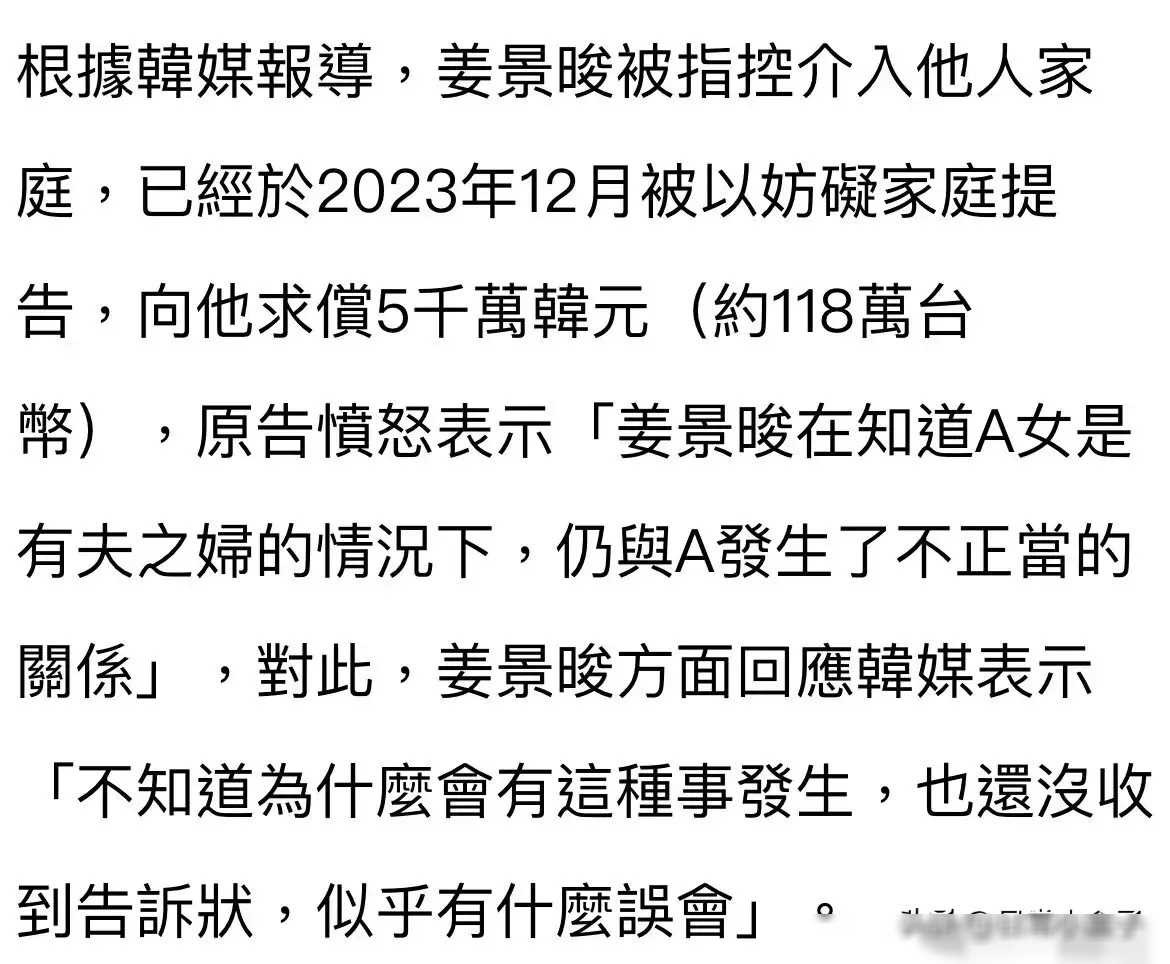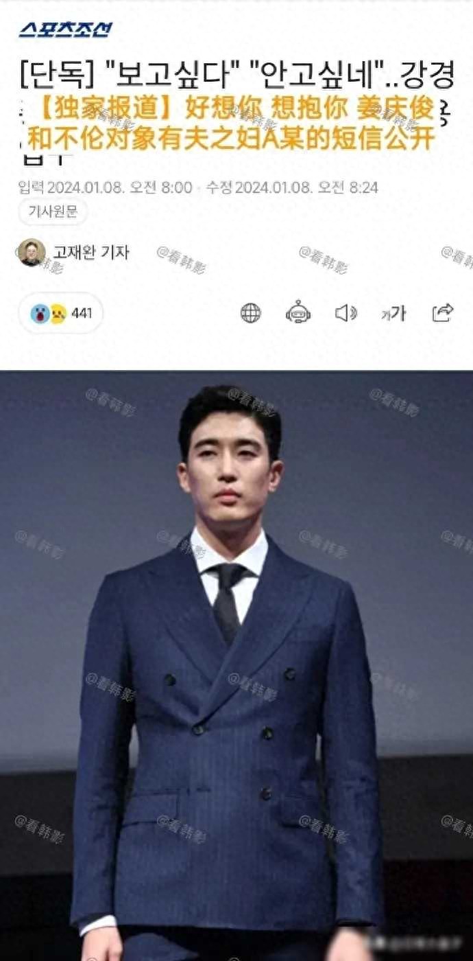 韩媒曝姜庆俊出轨,与一女子用社交软件偷情,好老公人设是装的?