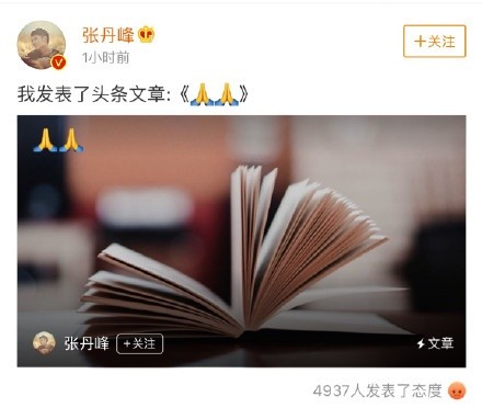 张丹峰在发文中称,其经纪人已经因为这次事件提出辞职,现在正在处于交接阶段;