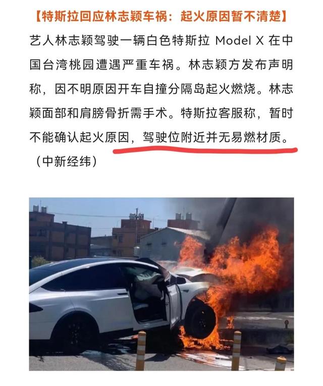 特斯拉品牌方面的官方客服,第一时间倒是疑似撇清了自己的责任,对方称,林志颖驾驶的这款汽车在驾驶部位并没有易燃材料,所以,就连他们自己也无法判断为何林志颖在发生撞车事故后,汽车会如此迅速地燃烧,直至最后烧得只剩下骨架。