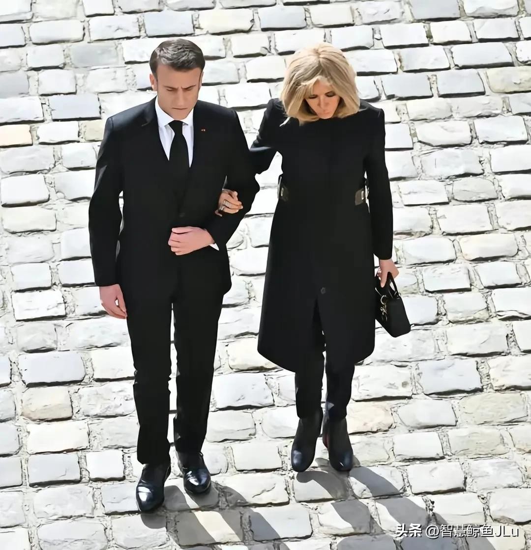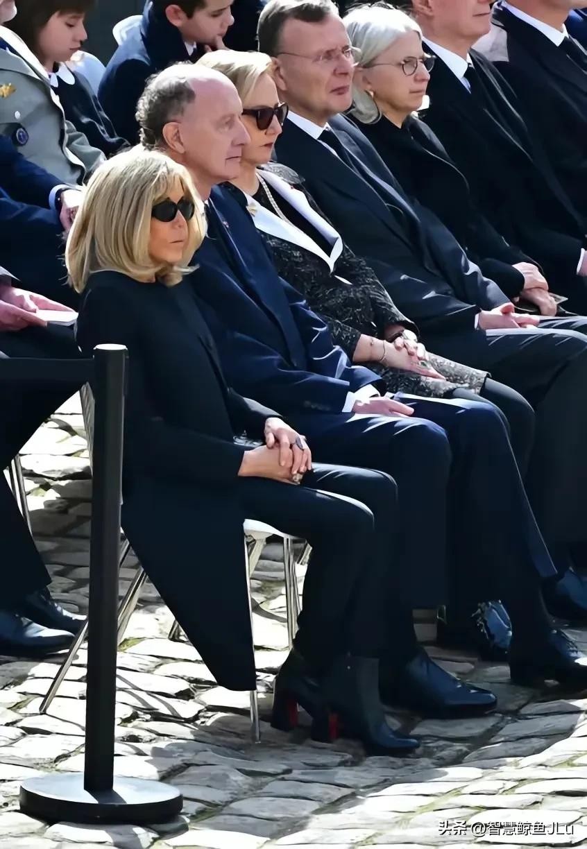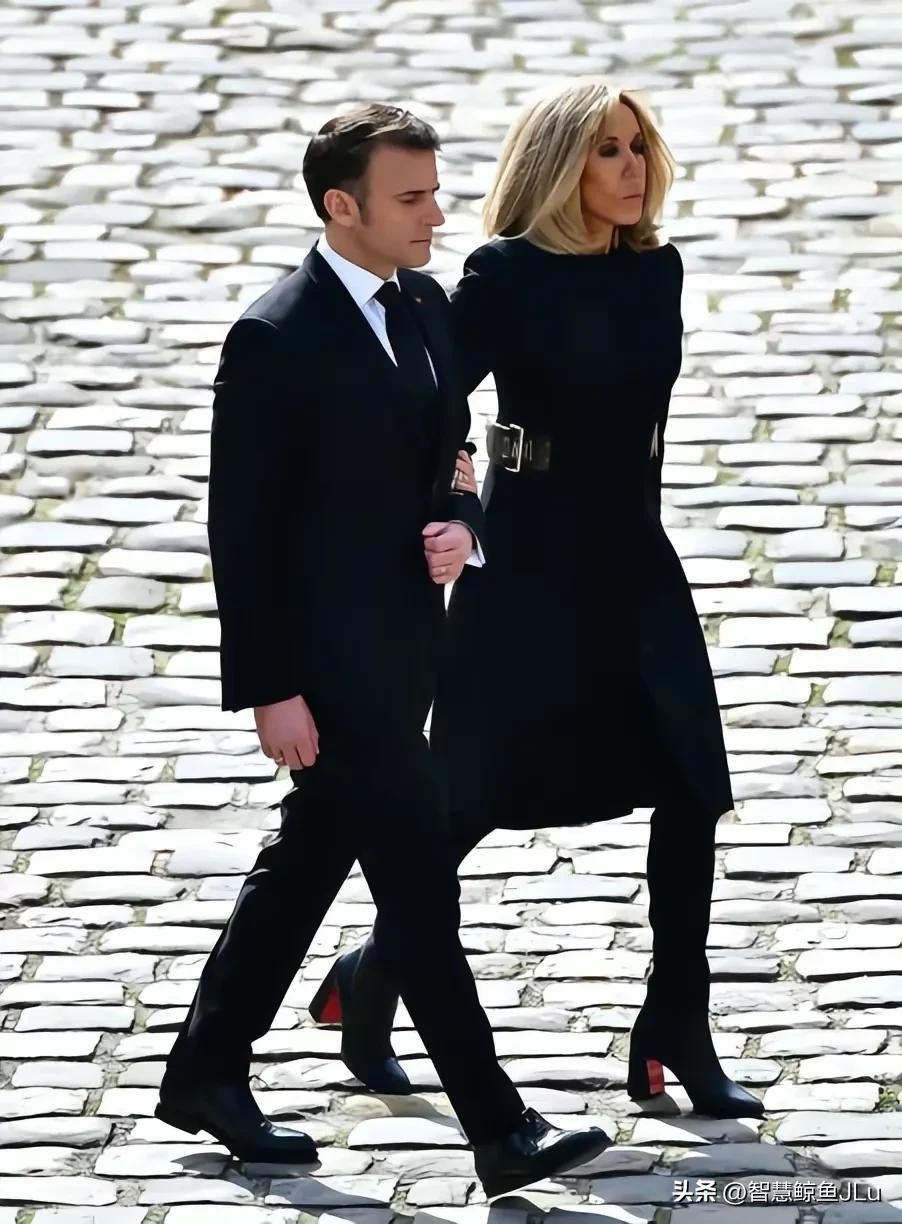 当天,布丽吉特身着一袭黑色长裙,搭配一双10公分高跟长靴,优雅大方。她的妆容精致,一头金发在阳光下熠熠生辉。在葬礼现场,她挽着丈夫马克龙的手,两人形影不离,展现出了深厚的感情。