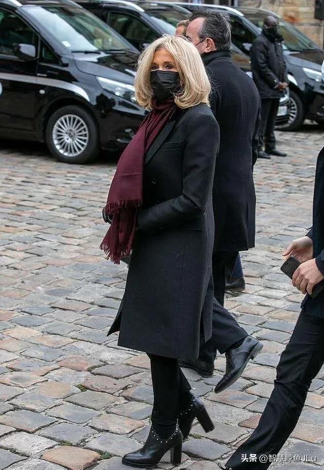 布丽吉特挽着马克龙出席葬礼都这么甜!穿10公分长靴,女神范十足