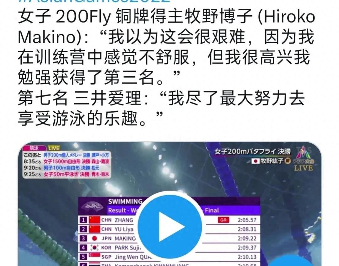 日媒赞扬汪顺夺冠,美女铃木里美:我以唐千婷的游泳作为参考