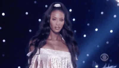 我本打算留给哈利贝瑞,因为她已经52岁了,但实在不忍心将她放入这个行列,退而求其次,我把这时期的第一黑珍珠送给超模娜奥米·坎贝尔,大家亲切称之为老米仙子,维密众神时代的黑人模特,号称拥有这世界最完美身材,霸气与“婊气”冲天,经典的甩流苏和捋头发动作,至今都为大家津津乐道。