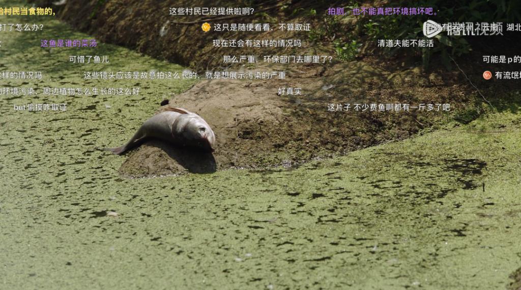 男女主角来到村子的湖边,一片废水全部都是鱼儿的尸体。