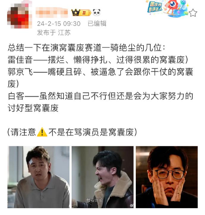 要说看完电影的最大感受,网友的一句辣评总结得十分到位:窝囊废简直就是雷佳音的统治区。