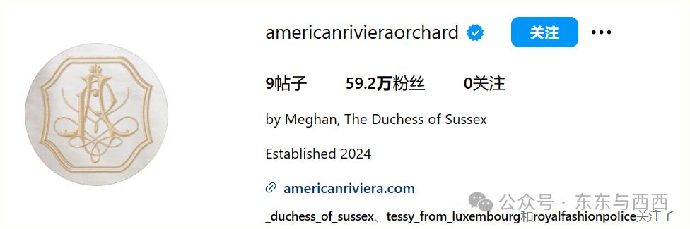 她重操旧业,开设 ins 账户 American Riviera Orchard,自我介绍公爵夫人,内容以带货为主。还没发啥,就涨到近 60 万粉丝。