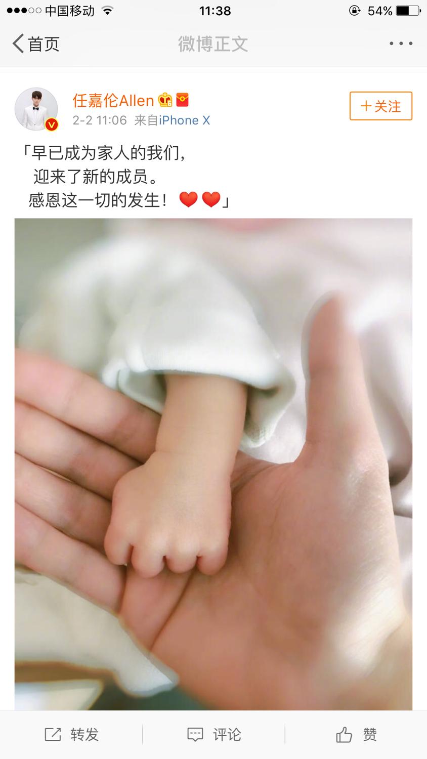 任嘉伦老婆和宝宝的照片(幸福的一家三口)