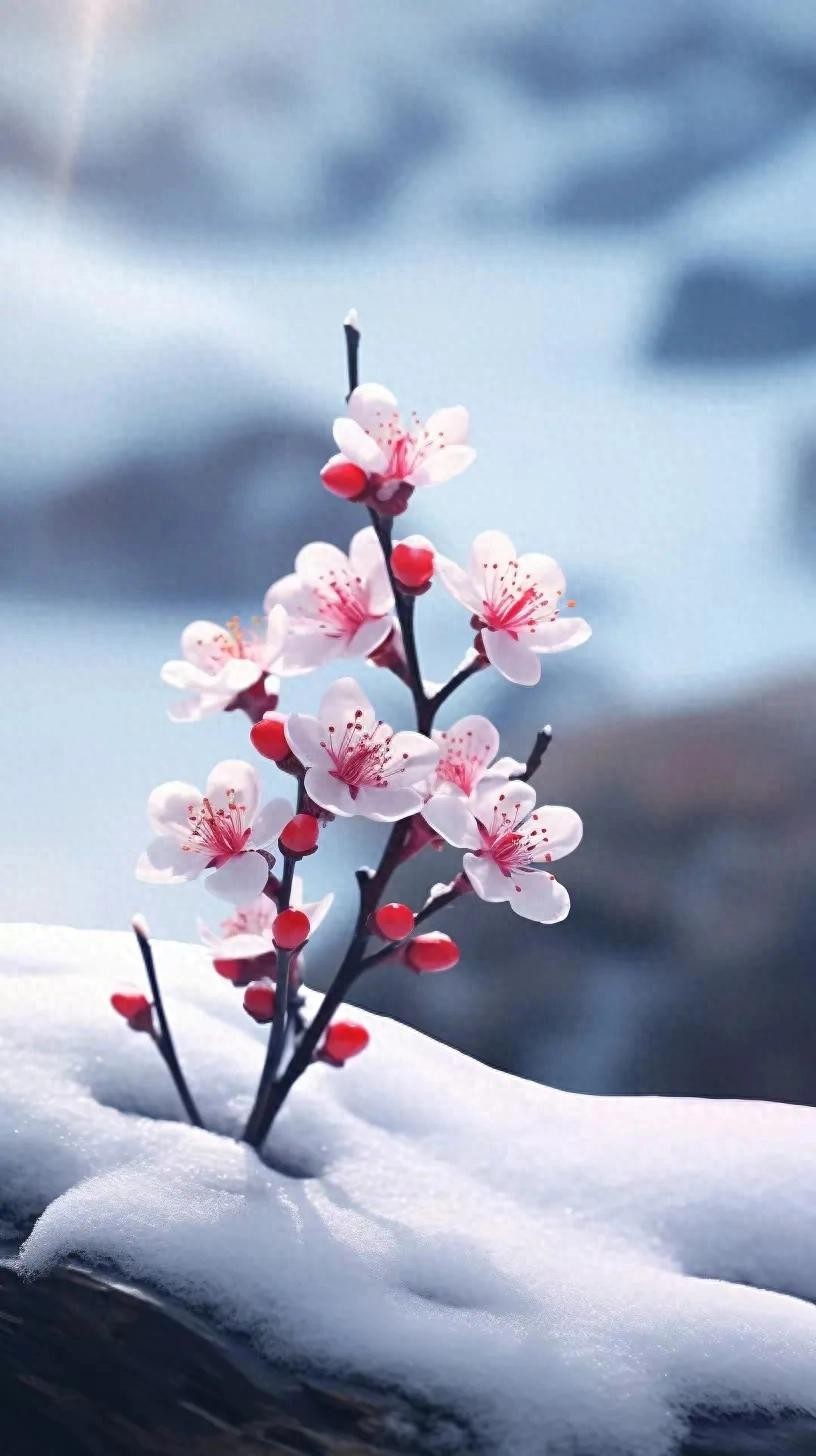 雪中梅,傲立寒冬,传递生命的坚韧和美丽