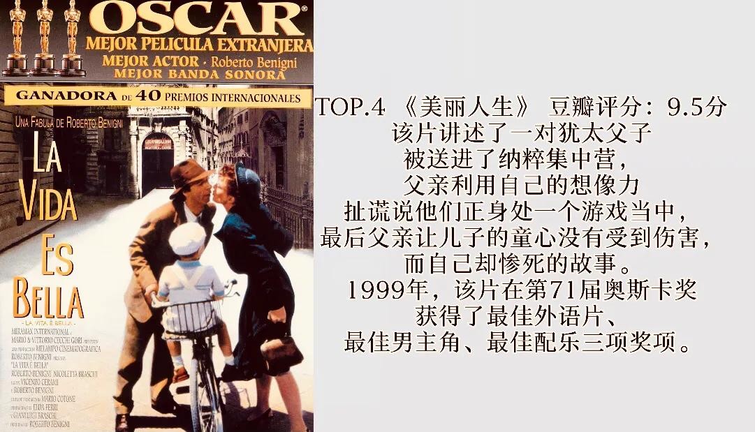 TOP.4 《美丽人生》 豆瓣评分:9.5分