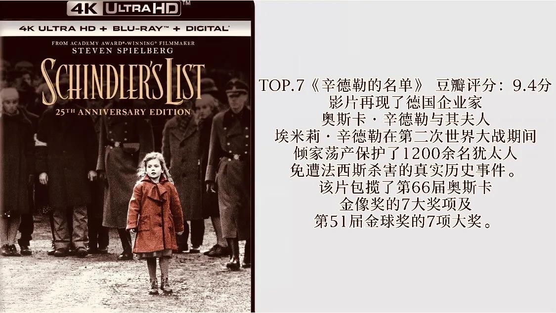 TOP.7《辛德勒的名单》 豆瓣评分:9.4分