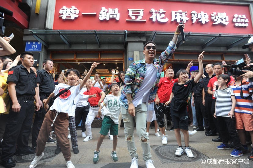 《热血街舞团》mvp肖杰跨界“代言”麻辣烫 在春熙路大秀热舞