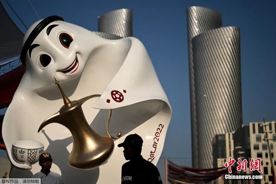 11月13日消息,随着卡塔尔世界杯脚步的日益临近,多哈大街小巷随处可见本届世界杯的吉祥物:拉伊卜,在阿拉伯语中意为技艺高超的球员。拉伊卜的设计灵感来自于卡塔尔人的传统服饰。图为这枚古灵精怪的“饺子皮”活力四射地出现在多哈的街头,萌化人心。