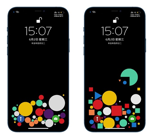 特效墙纸为大家分享了很多期,还有可以自定义制作墙纸的规则文件,今日为大家分享两张特效墙纸,可为锁屏快捷键增加颜色背景,并且有效的隐藏在墙纸中,吃豆豆特效,仅支持全面屏机型,每款机型两张,共计12张,下方为效果图展示。