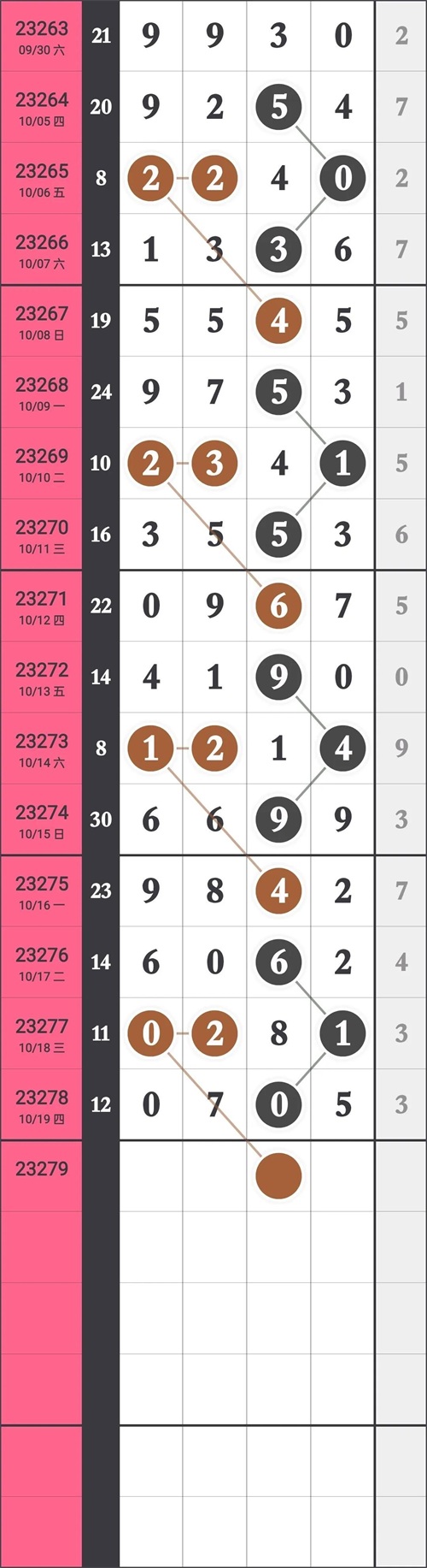 排列五最近规律分析走势图