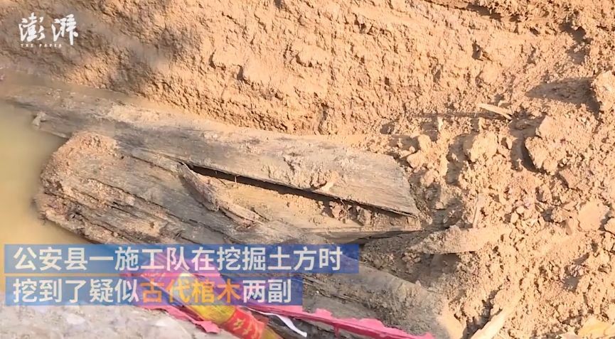 湖北荆州施工挖到两座古墓 初判为明代夫妻合葬墓