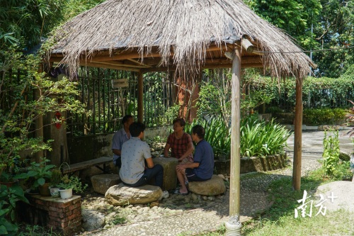 村民在凉亭里闲聊村内大小事。颜志雄 摄
