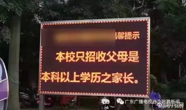 "广州某私立学校电子屏上显示,“本校只招收父母是本科以上学历之家长”