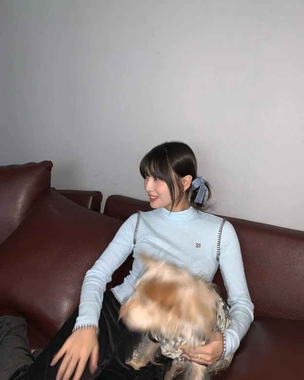 近年很流行丝带发型,其实法式刘海与丝带发型亦十分融合,就像Jennie一样,把刘海及两侧的发丝分好,然后把蝴蝶结夹在耳朵上方即可,令造型充满芭蕾舞风格。