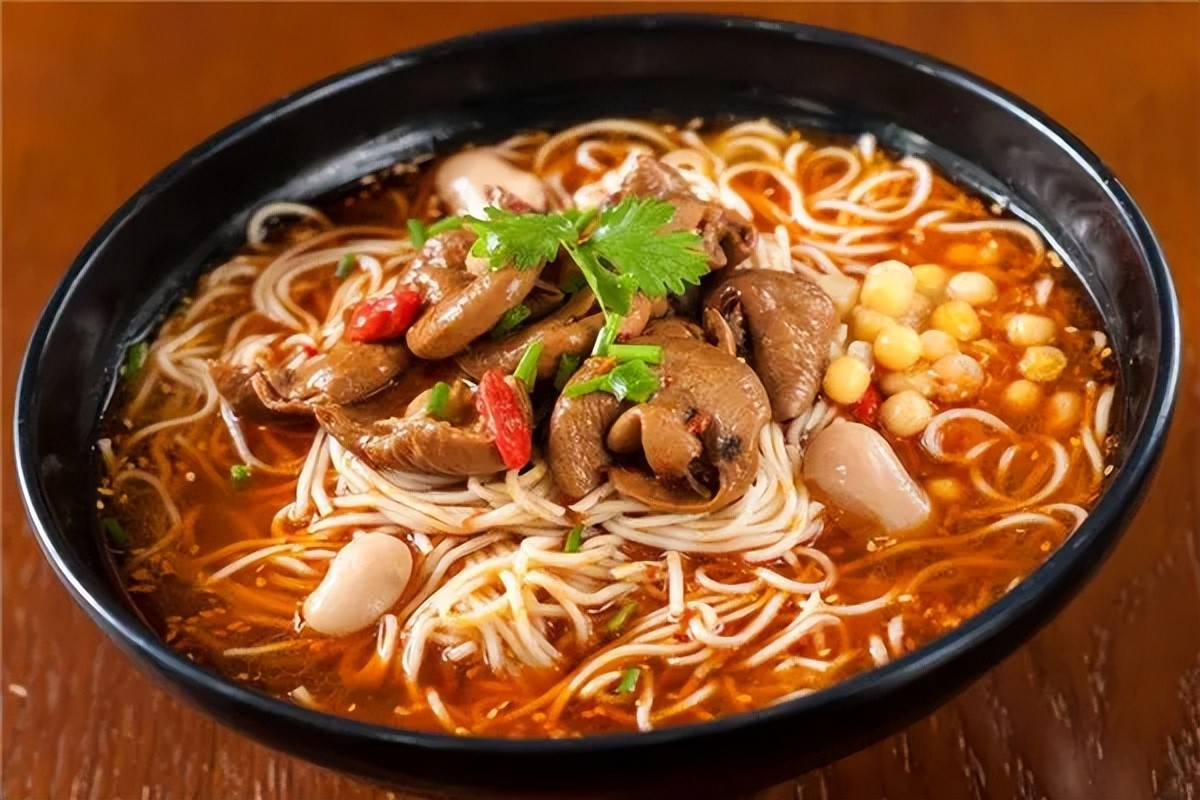 肠旺面是贵州的特色传统面食。这面的配料讲究,有肥嫩的猪大肠、嫩滑的血旺、香脆的脆哨等。面条选用的是精细的碱水面,筋道有嚼劲,再加上红油辣椒,红亮的油花漂浮在汤面上,看着就有食欲。贵州人对肠旺面那是爱得深沉,早餐来一碗,一天都精神。