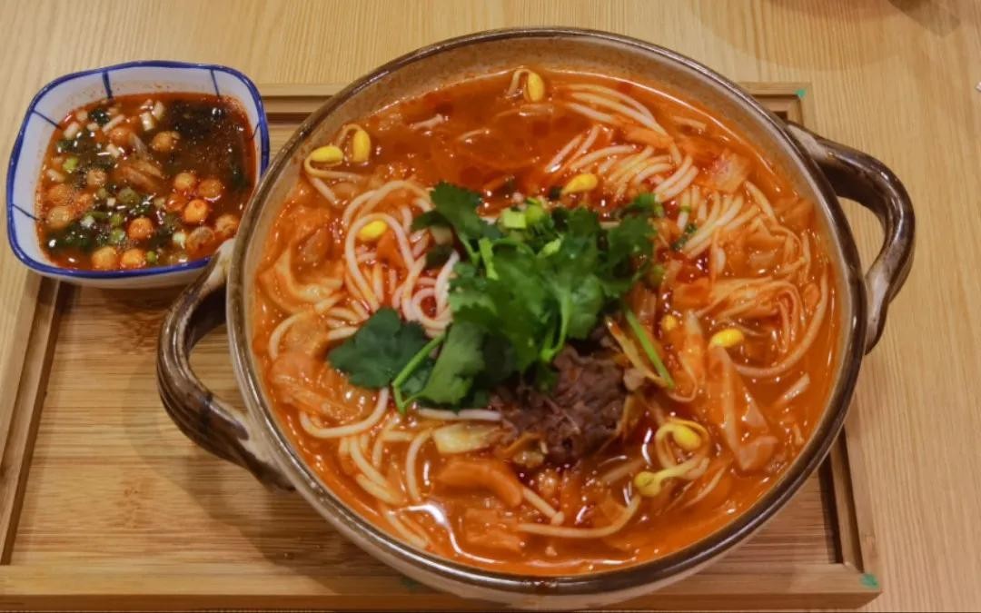 酸汤粉是和酸汤鱼类似,也是以酸汤做汤底,配上爽滑劲道的米粉,再加上肉片、蔬菜、酸菜等配菜,营养又美味。酸汤浓郁,米线吸饱了汤汁,酸辣开胃是很多贵州人早餐的首选。