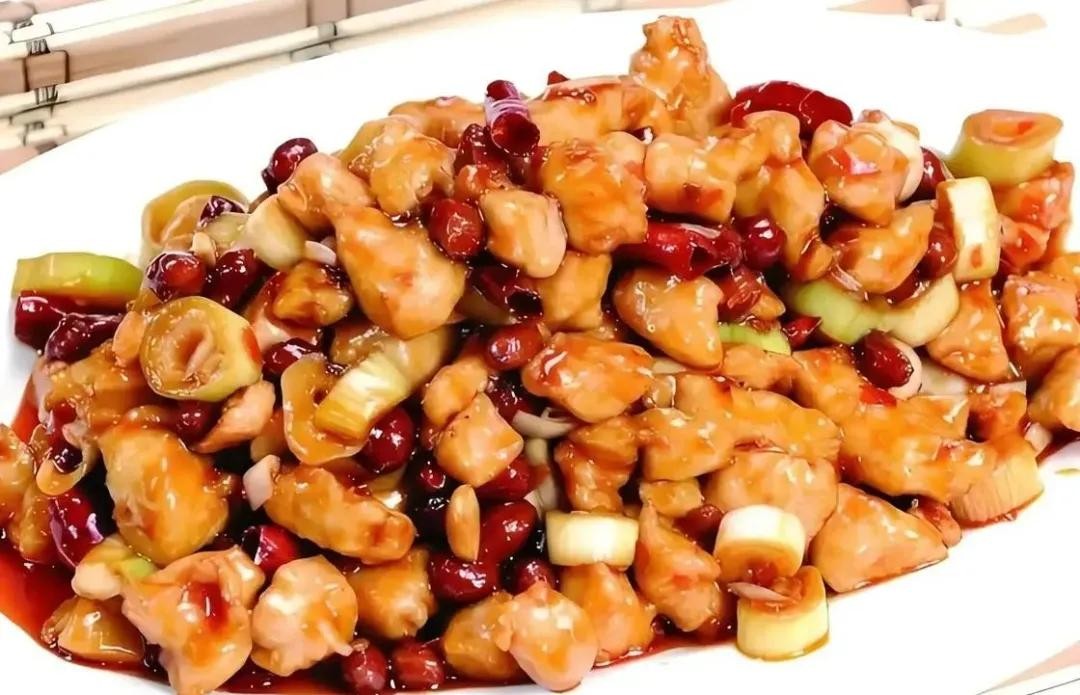 贵州的宫保鸡丁很地道。把鸡肉切成小块,用辣椒、花椒、花生米等配料炒制而成。鸡肉外酥里嫩,花生米香脆可口。棕红油亮的色彩看着就特别有食欲。这道菜香辣味浓,历史悠久,很多人都很喜欢。